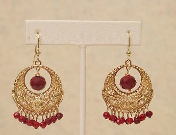 Gold Red Chandelier Earring/ Vintage-Inspired Earring/ Indian-Inspired Gold Red Earring/ Red Indian Inspired Earring
