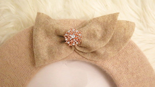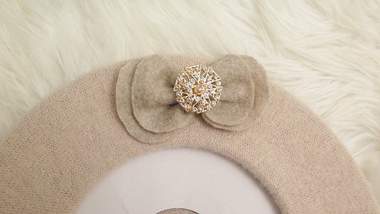 Beige French-Style Brown Beret/ Brown Bow Beret/ Designer Bow Beret