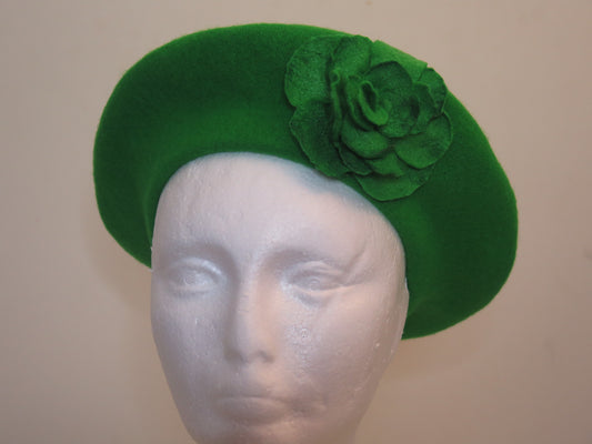 Green Flower Beret/ Green Beret/ Green French wool Beret/ Green Wool Beret/ Green Beret For Women