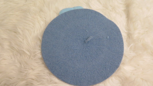 Blue Flower Beret/ Blue Wool Beret/ Blue French Beret/ Blue Flower French Beret