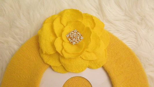 Yellow Flower Beret/Yellow Flower Beret/ Yellow Wool Beret/ Yellow Beret for Women