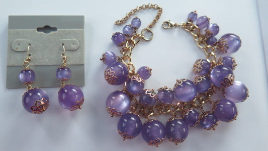 Purple Jewelry Set: Bracelet & Earring/ Purple Cluster Bracelet with Matching Earring/ Purple Jewelry