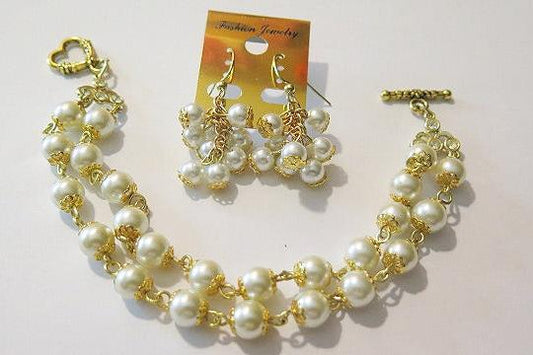 Pearl Bracelet Earring Jewelry Set/ Handmade Jewelry Set