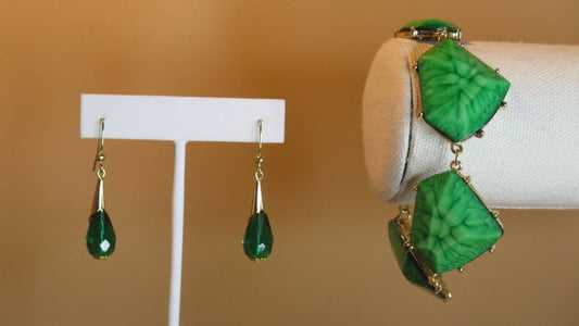 Handmade Green Bracelet Earring Set/ for Women Green Jewelry Set/ Green Handmade Jewelry Set For Women