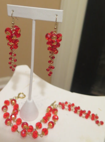 Handmade Red Jewelry Set/ Red Bracelet/ Red Cluster Earring/ Red Bracelet Earring Set For Women