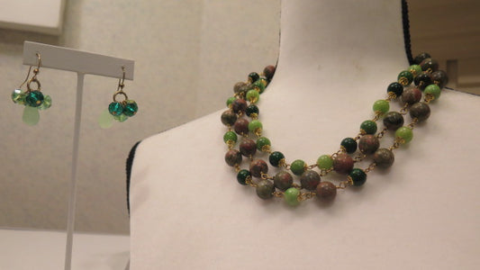 Colorful Green Jewelry Set/ Green Necklace Earring Set/ Colorful Green Jewelry Set/ Green Multilayer Necklace with Earring