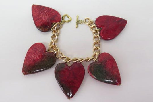 Red Bracelet Ring Set/ Handmade Jewelry Set/ Red Large Heart-shape Beads Bracelet Ring Set