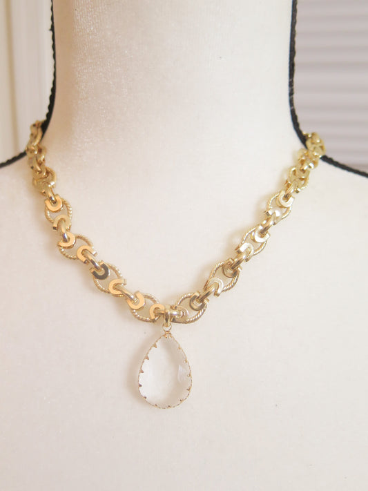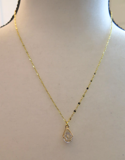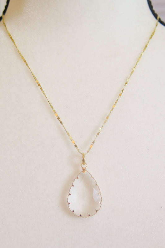 Gold Necklace With Clear Pendant/ Clear Pendant Gold Necklace/ Gold Necklace