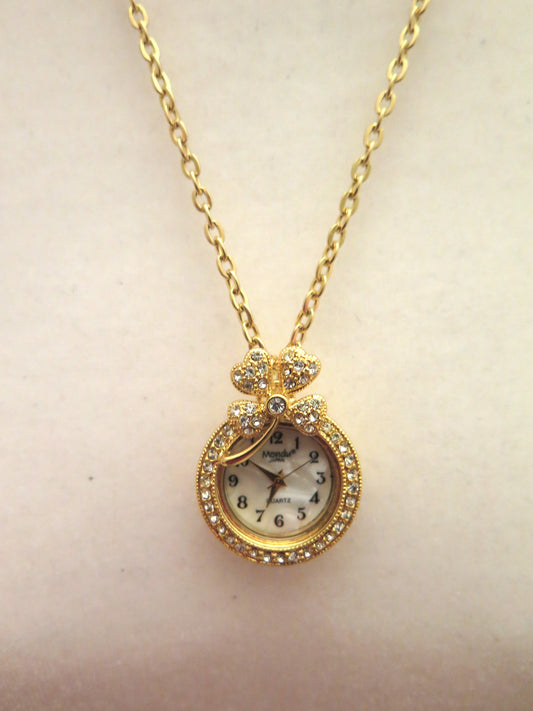 Gold Clock Necklace/ Unique Gold Necklace With Clock Pendant/ Gold Necklace With Clock Pendant/ Gold Necklace