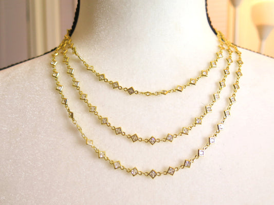 Diamond-Shape Gold Trilayer Necklace/ Trilayer Gold Necklace/ Gold Necklace
