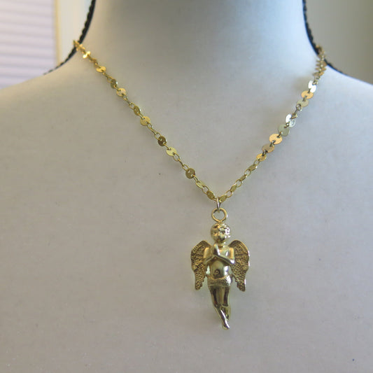 Gold Necklace/Gold Necklace with Angel Pendant/ Angel Pendant Necklace