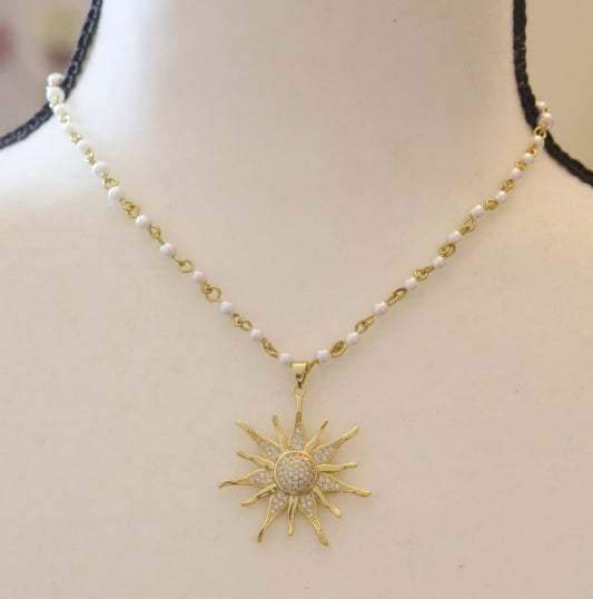 Pearl Necklace With Sunburst Pendant/ Pearl Necklace