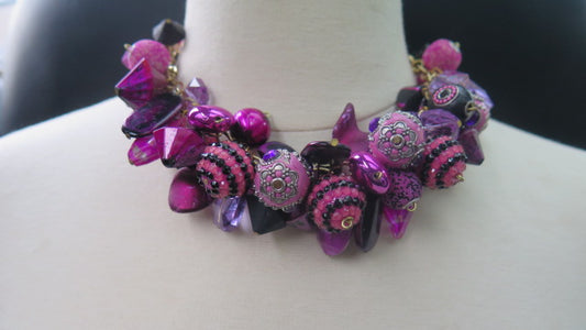 Colorful Purple Cluster Necklace/ Purple Necklace