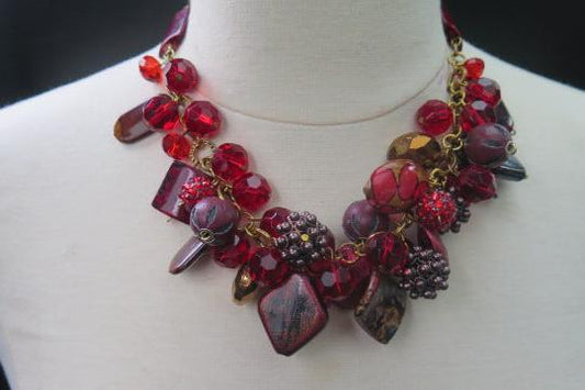 Colorful Red Cluster Necklace/ Red Cluster necklace