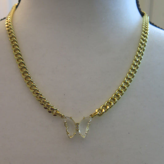 Gold Necklace/ Gold Necklace With Clear Butterfly Pendant/ Gold Necklace With Butterfly Pendant