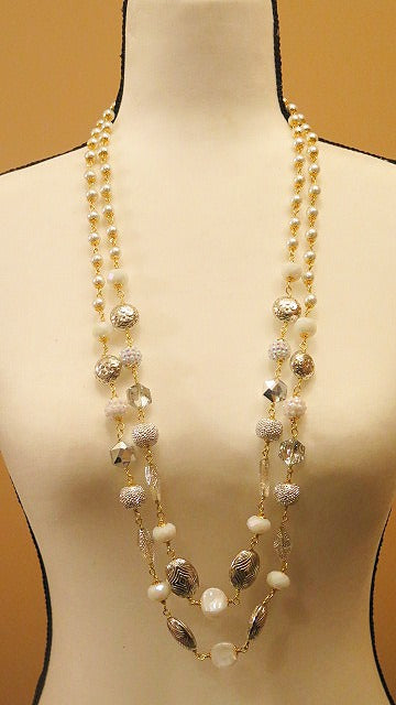 Long Pearl Necklace/ Long Summer Necklace/ Pearl Necklace