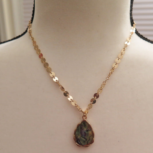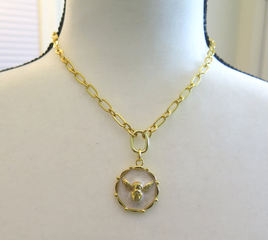 Gold Necklace With White Pendant/ Gold Necklace/ White Pendant Necklace