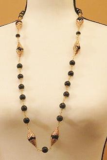 Long Black Summer Necklace/ Long Black Gold Necklace/ Gold Black Beads Necklace/ Summer Necklace