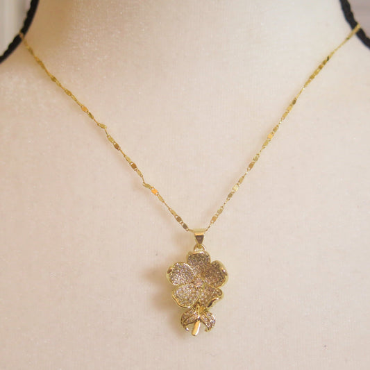 Gold Necklace With Flower Pendant/ Sparkling Flower Pendant Necklace/ Gold Necklace