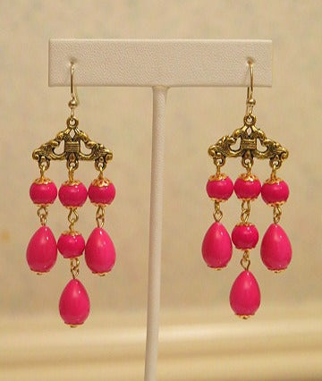 Fuchsia Gold Vintage-Inspired Chandelier Earrings for Women
