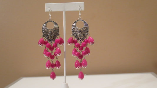 Silver Fuchsia Chandelier Earrings for Women