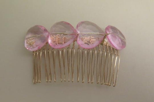 Pink Heart Shape Hair Comb/ Pink Hair Comb/ Heart-Shape Beads Hair Comb