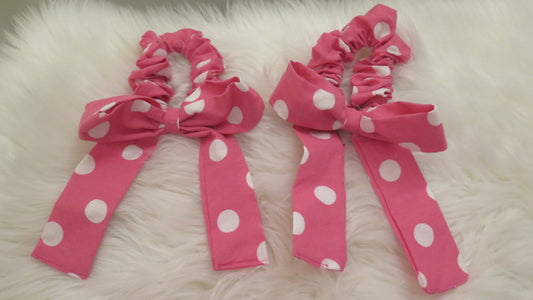 Pink Polka Dot Bow/ Pink White Bow Scrunchies/ Pink White Hair Accessory
