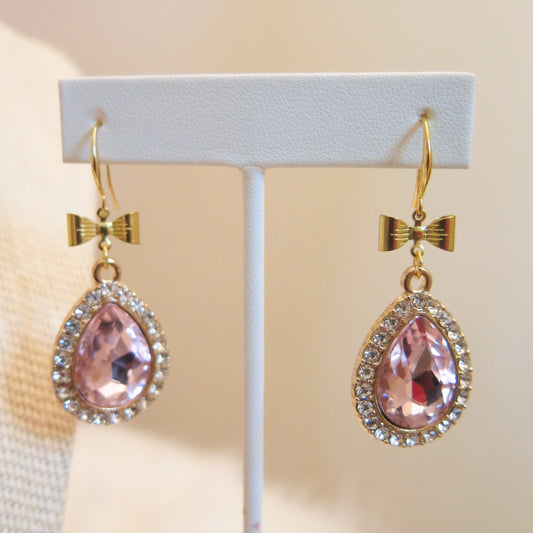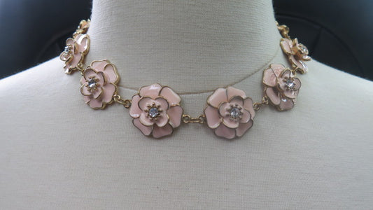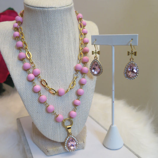 Pink Jewelry Set/ Clear Pink Gold Necklace with Matching Earring