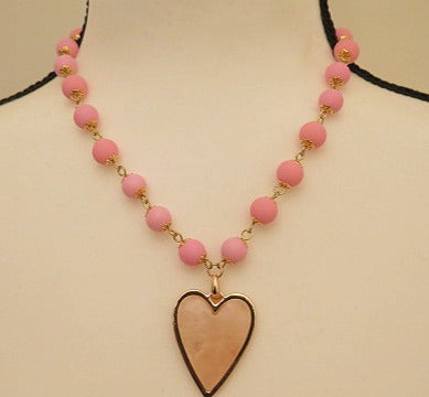 Pink Heart-Charm Jewelry Set/ Pink Jewelry Set/ Gold Necklace and Heart -shape Charms