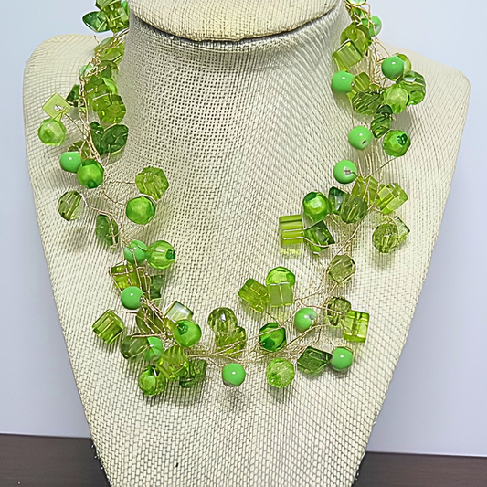 Green Crystal Twisted Wire Statement Necklace | Handcrafted Multi-Strand Peridot Bead Bib Necklace for Women & Special Events