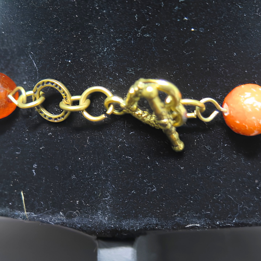 Orange & Gold Swirl Beaded Statement Necklace | 32" Hand-Painted Bead Long Necklace with Heart Toggle Closure for Women