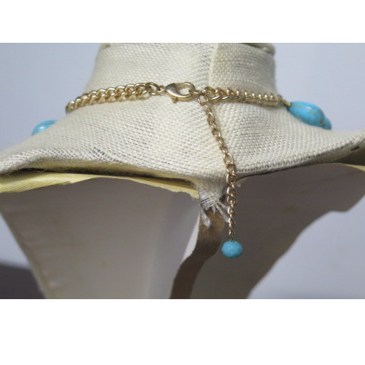 Turquoise Teardrop Statement Necklace | 18" Handcrafted Gold Chain Graduating Bead Collar Necklace with Lobster Clasp & 4" Extension