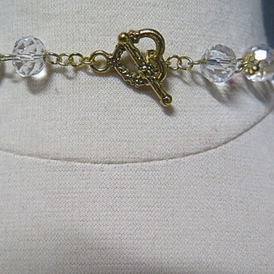 Clear Crystal Graduating Bead Long Necklace | 36" Handcrafted Gold Wire Faceted Crystal Statement Necklace with Heart Toggle Clasp for Women