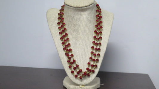 Burgundy Garnet Triple Strand Crystal Necklace | 20" Handcrafted Gold Wire 3-Layer Faceted Bead Collar Necklace with Heart Toggle Clasp