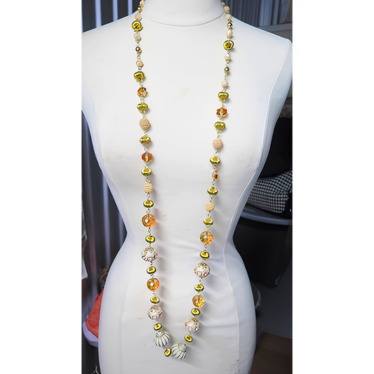 Gold & Ivory Artisan Mixed Bead Extra-Long Statement Necklace | 55" Multi-Style Wrap Necklace for Women, Everyday Wear & Special Occasions