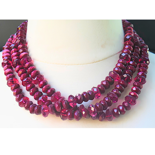 Red Triple-Layer Wire Wrap Long Necklace for Women