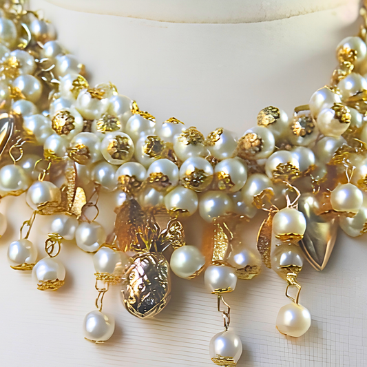 Pearl Grape-Inspired Cluster Gold Necklace for Women