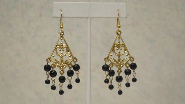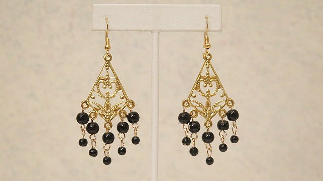 Our Black victorian inspired earring, this piece is light-weight made with 2mm black beads and fish french hook.This piece measures 3".