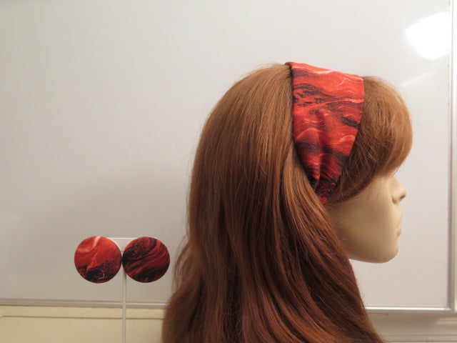 Black Red Headband & Earring/ Red headband and matching Earring/ Headband and Matching Earring