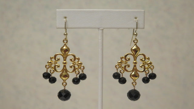 Embrace timeless elegance with our vintage-inspired black earrings. Crafted with a gold connector, 6mm black beads, and 8mm black glass bead, these earrings feature a classic fish French hook for secure wear. Measuring 2.5 inches, they bring a sophisticated touch to any outfit. Complete the look with our stylish scarf and chic beret for a truly polished, vintage-inspired ensemble. Perfect for elevating both casual and formal looks, these earrings are a must-have addition to your accessory collection.We have a neacklace, bracelet, beret and scarf. Shop a variety of accessories, color and design.