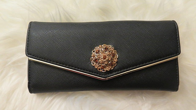 This is a stylish and unique wallet designed for women to carry personal items. The wallet has a compartment that carries items like but not limited to paper currency, coins, credit cards, identification documents, business cards and others. These wallets are designed for everyday use for a classic lady, with many designs available. These wallets have unique striking features like sparkling rhinestones. It measures 7.5" by 3.5".
