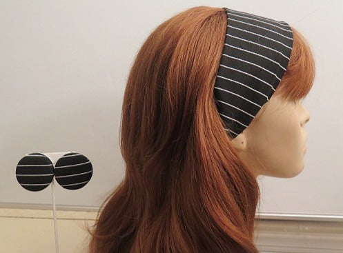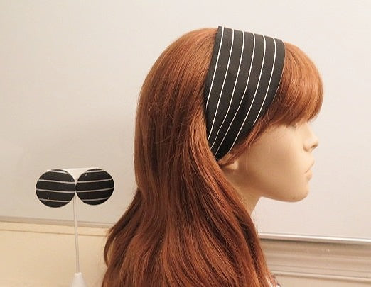 Our headband features a timeless black fabric with crisp white stripes, offering a chic and sophisticated look that complements any hairstyle. The matching earrings are crafted from the same high-quality fabric, creating a cohesive and polished appearance that’s perfect for any occasion—whether you're dressing up for a special event, adding a touch of flair to your workwear, or simply enhancing your everyday style.