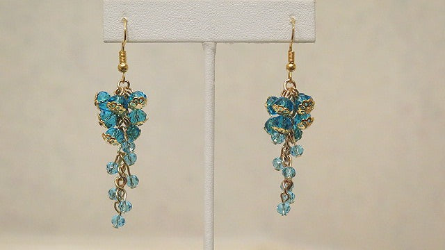 Blue cluster earring, grape inspired earring.This is made up of 4mm,2mm blue blue glass beads, gold tone cap, put together gold tone chain , wire and french hook. It measures 2.5" in length.