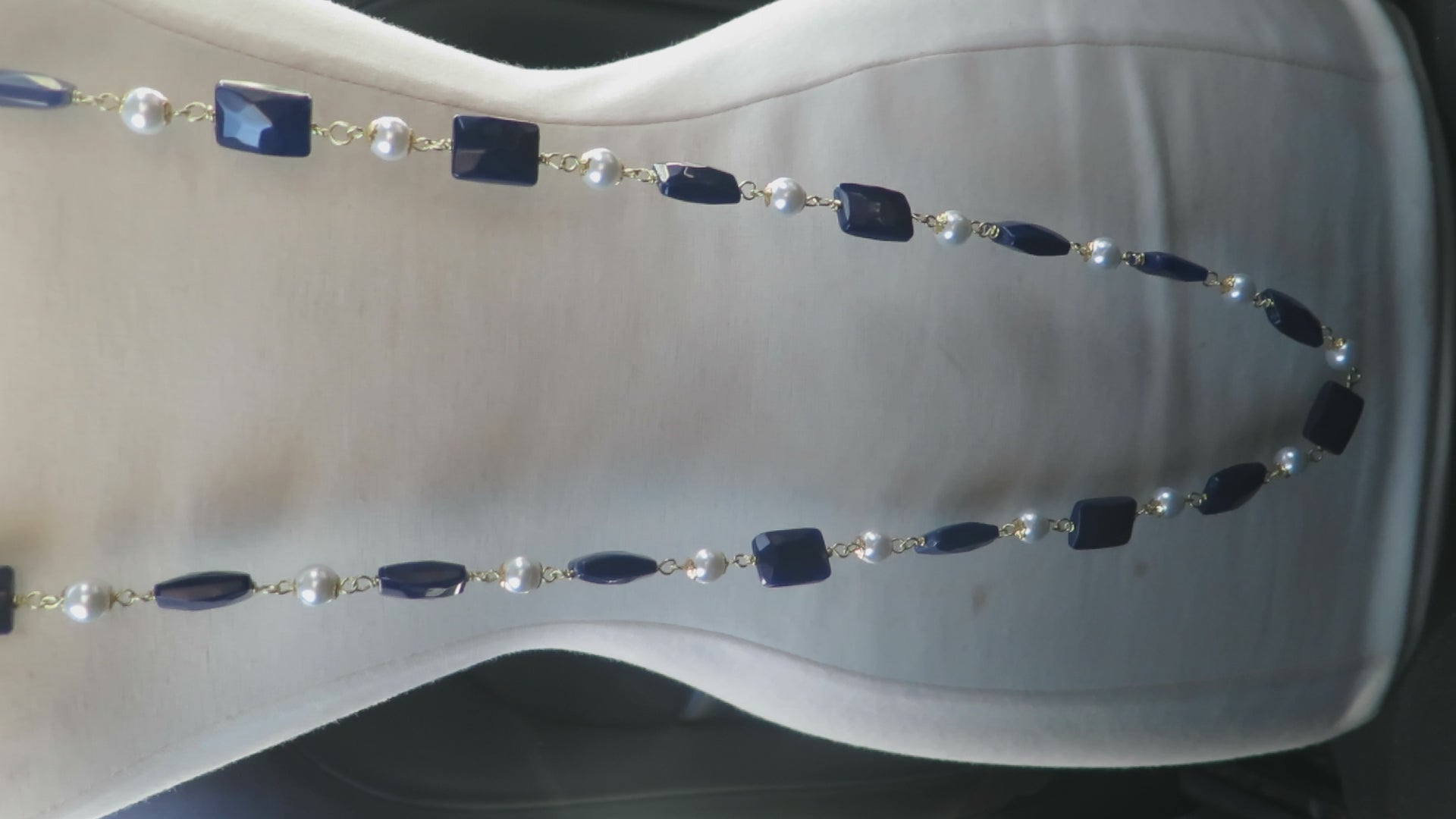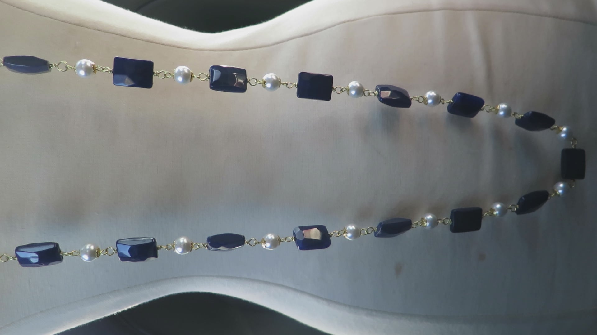 Step out in style and let your individuality shine with this Extra Long Pearl and Square Blue Beads Jewelry Set, the perfect blend of elegance and uniqueness for every occasion.