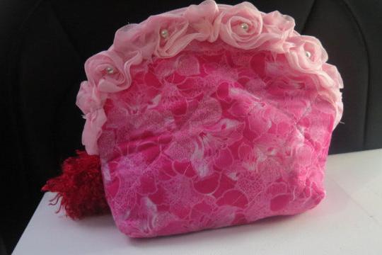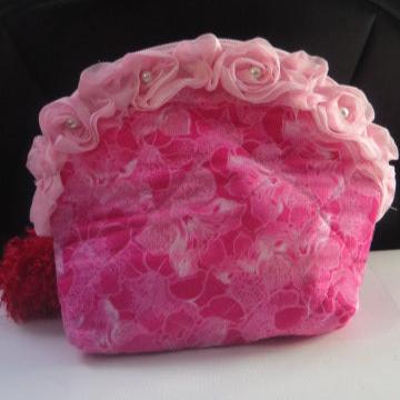 Floral Pink Bag/Pink Floral Pouch Bag/ Pink Toiletry Bag/ Pink Make-Up Bag/ Pin Cosmetic Bag