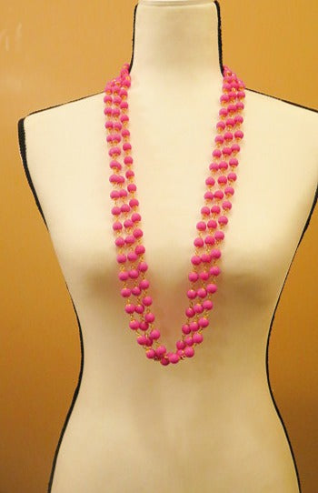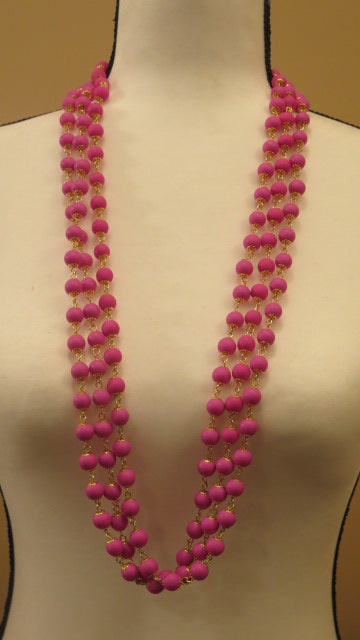 Perfect for both formal and casual occasions, the Long Fuchsia Three-Layer Strand Necklace is a stunning addition to any jewelry collection. We have other piece that can go with this piece :pinkbracelet and pink hats, also scarf and pink hair accessories.