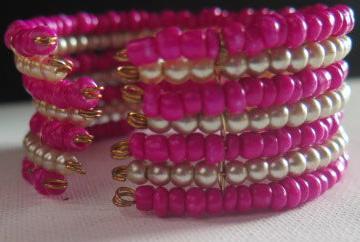 Fuchsia White Cuff Bracelet/ Fuchsia Pearl Bracelet/ Fuchsia Pearl Seadbeads Cuff Bracelet