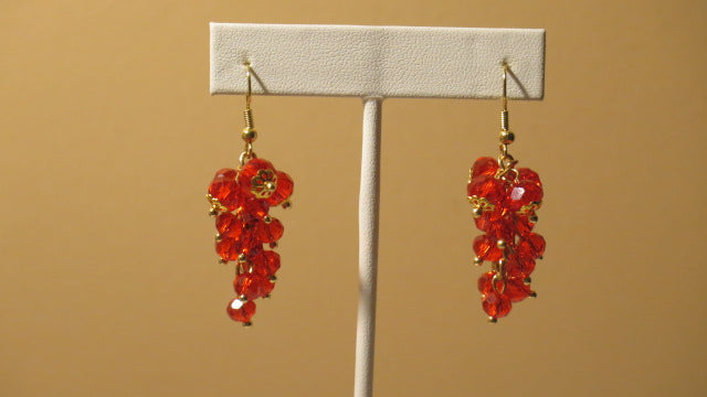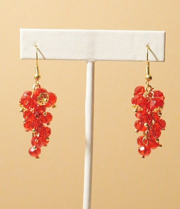 Handmade red earring,stunning grape inspire earring. It is made up of gold cap, red bicone earring and french hook. It measure 2".
