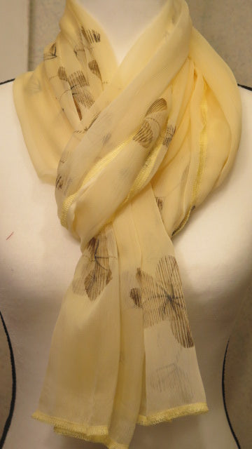 Yellow scarf, made with 100% silk crinkled chiffon. The fabric was hand painted.It measures 23 X 73". This handmade scarf can be worn in may different style.