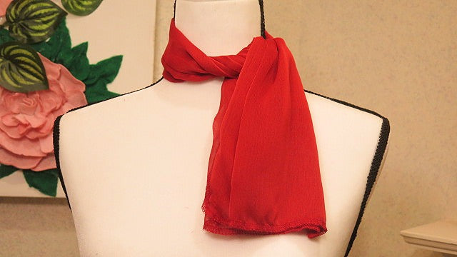 Red handmade Scarf, made with polyester chiffon fabric.It measures 22" X 34" in length.